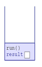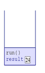 同时我们应该知道的是,方法的调用其实是入栈与出栈。所以,我们可以通过下面这些图来了解执行过程。 1.To start off the program, the program pushes a frame corresponding to an invocation to run(). Notice how this frame includes room for run’s variable result.