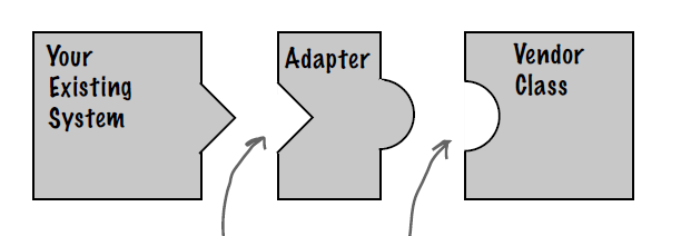 我们每个人在生活中都经历过这样的事,手中的电子产品和插座要求的接口类型不相符,比如插座要求的是三孔,而自己的插头是两孔,这个时候就需要一个电源适配器插在原先的插座上,然后再适配器的另一端暴露一个两孔的插孔供我们使用。对于客户来说,不管原来插座式几孔的,他只在乎自己能用的是两孔的就行了,其它的都交给了适配器去做。