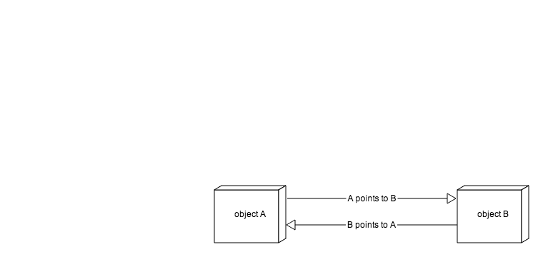 弱引用的一大好处是可以用来避免强引用循环(Strong reference Cycle)。例如有两个对象,他们互相指向对方,即使你把所有指向这两个对象的指针都设置为nil,这两个对象也不会被释放,因为他们仍然有来自对方的指针。