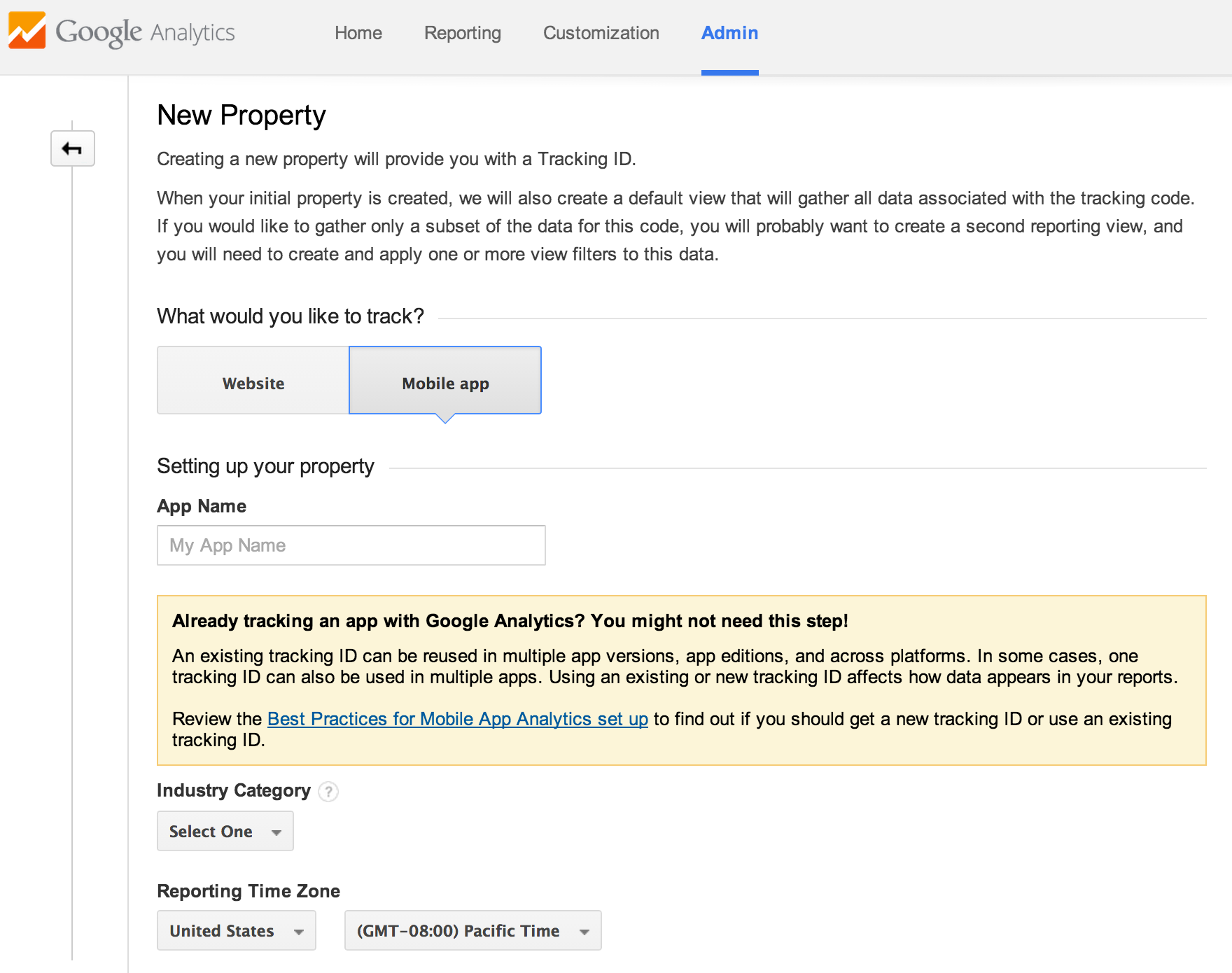 在这个页面你会得到你app的专属tracking id,每个应用都有自己的一个tracking id,在你的app中会使用到这个id,之后我们会具体谈到其原理和使用.
