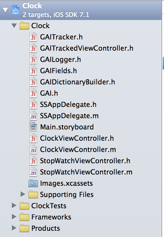 把下面几个文件拷贝到你的项目中去,注意在拷贝的时候要选择Copy items into destination group’s folder and Add the files to the Clock target.,这样才能保证文件被真正拷贝到了项目里面,而不是只产生了对文件的引用.