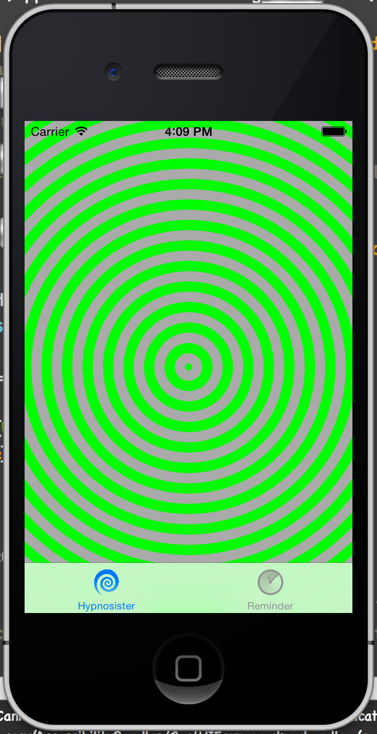 我们发现,在每一个tab上都有一个图片,图片下面有一行介绍性的文字,这些都是可以改变和设置的.虽然UITabBarController管理着两个不同的viewcontroller,我们可以把viewcontroller连同tabbar上面的图片和文字想成一个整体,所以图片和文字就需要到相应的viewcontroller里面去设置,我们来到WUSTLHypnosisViewController类,在initWithNibName方法里面进行初始化:
