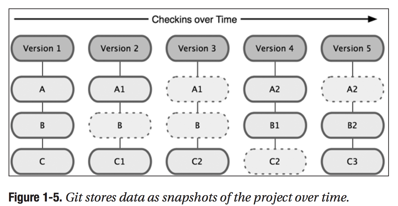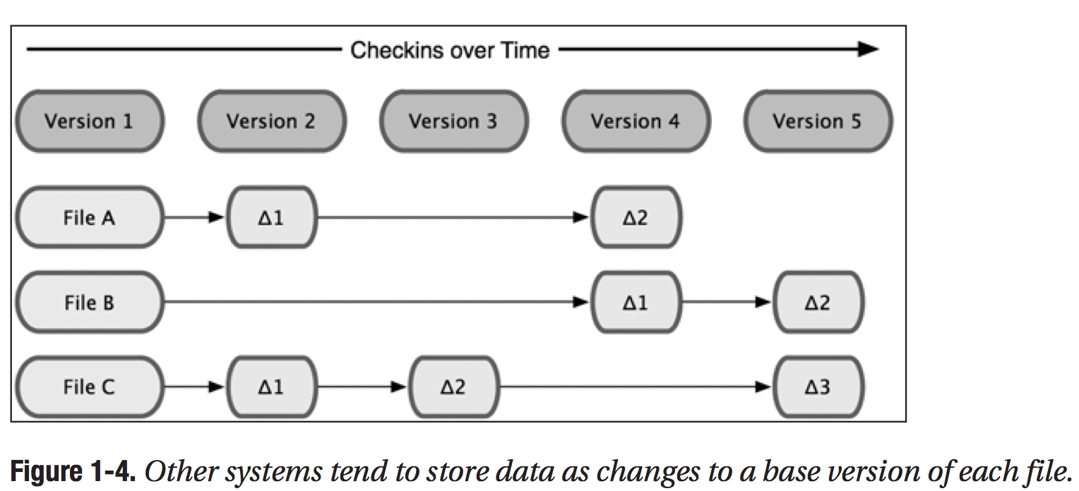 对于一般的VCS来说,在不同版本之间它存放的是文件在各个版本之间的差异: