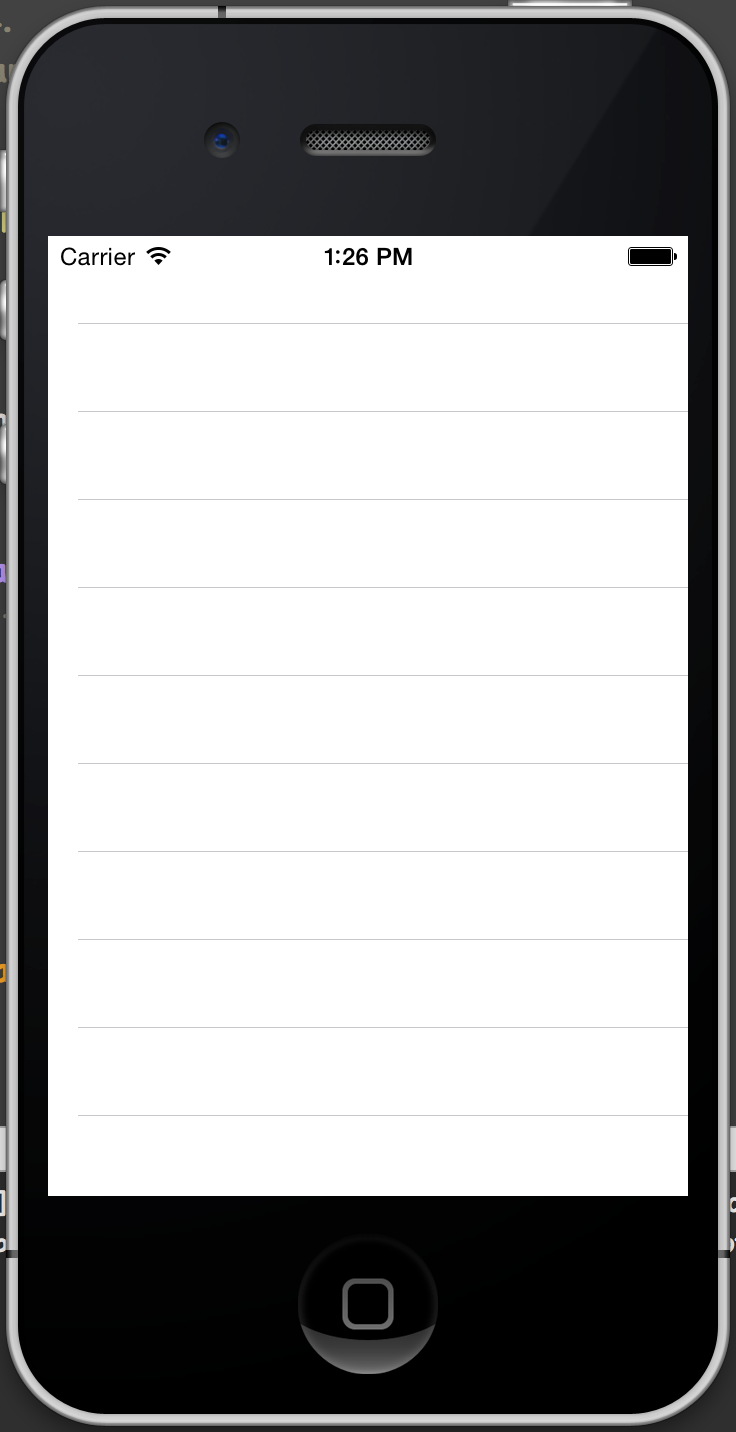 现在运行,可以看到已经有table view的效果了,但是里面没有数据